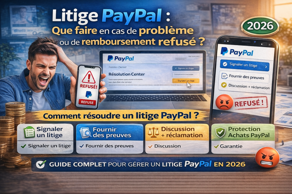 Un litige PayPal peut survenir après un achat en ligne : objet non reçu, produit non conforme ou remboursement refusé. Voici toutes les solutions pour gérer un litige PayPal efficacement en 2026.